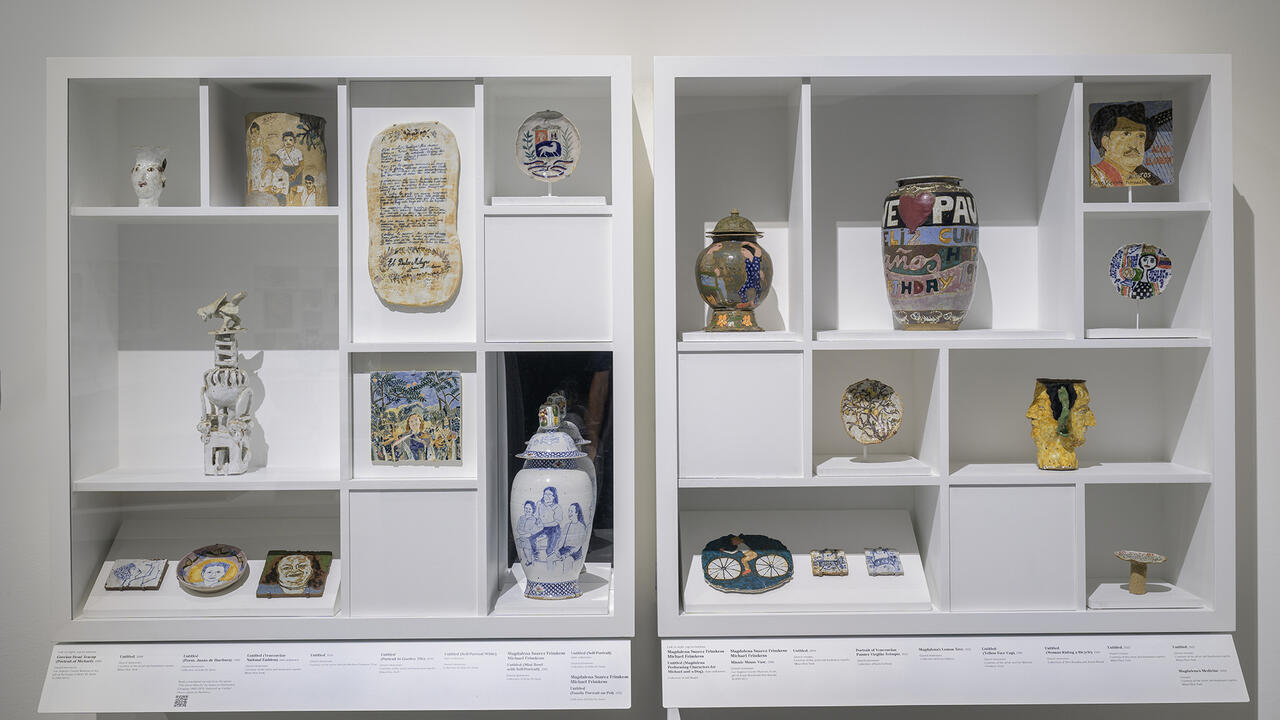 The artist’s first institutional survey at the Los Angeles County Museum of Art assembles her eclectic ceramics, some of which she made with her husband