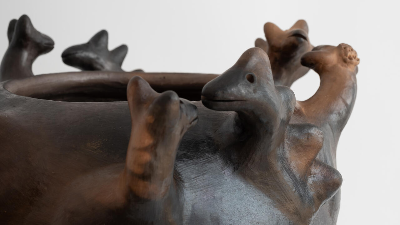 The artist’s first institutional survey at the Los Angeles County Museum of Art assembles her eclectic ceramics, some of which she made with her husband