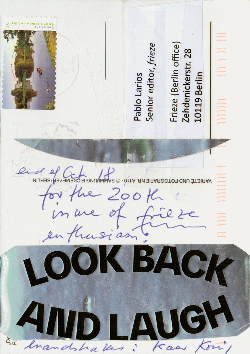 Main Image: Kasper König, Look Back and Laugh, 2018, specially commissioned for the 200th issue of frieze. Courtesy: Kasper König