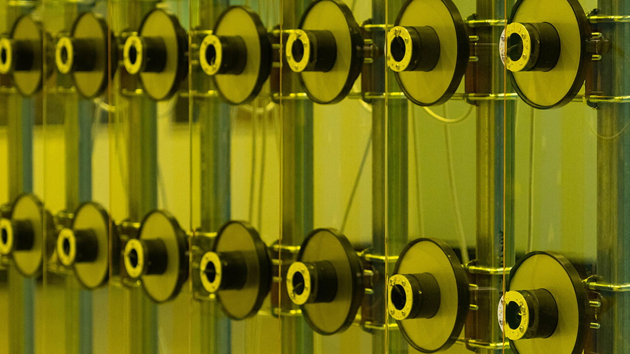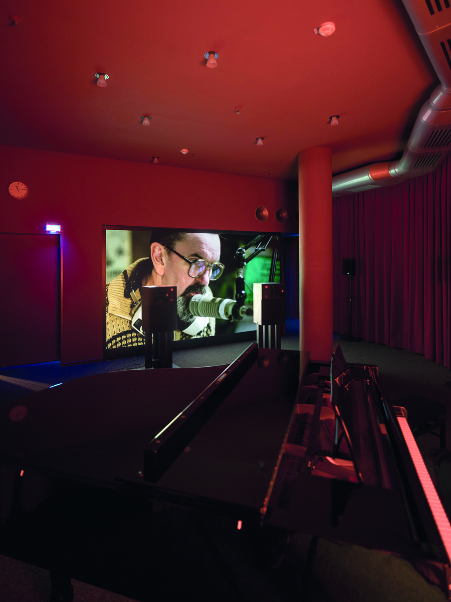 At other places, the relationship between artwork and place is more inscrutable. Presented in the basement of the City Library Münster, Gerard Byrne’s 20-minute film In Our Time takes place in a fictional radio control booth. A DJ reads the news, presents advertisements and plays music. The script is a mélange of various radio transcriptions of shows from the early 1970s. The film engagingly transports the viewer back to a different era and unveils what is usually invisible to the radio listener, while resonating with more recent phenomena such as a 24/7 news cycle, ‘fake news’ and a global broadcast culture.