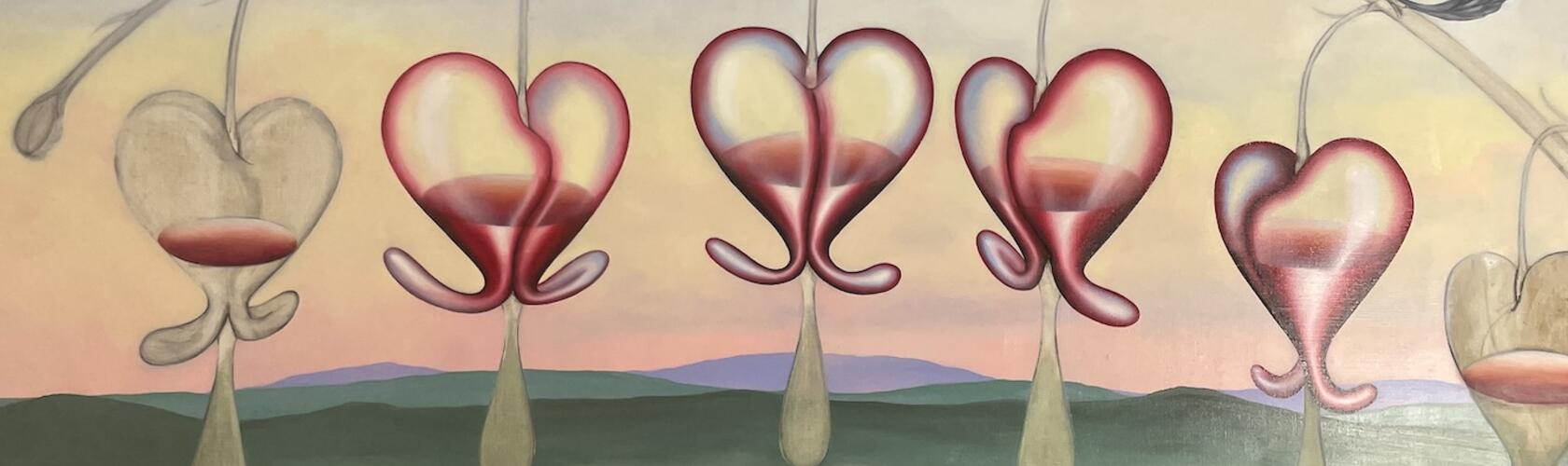 EMS One of the new paintings is based on the bleeding hearts plant, which I have long admired, and finally thought to incorporate into my work. I find this plant devastatingly poetic. In the spring, bushes of it grow near my Brooklyn studio.